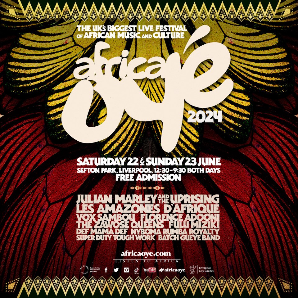 This year’s Africa Oyé festival will take place on June 22nd and 23rd 2024, in Liverpool’s Sefton Park from 12:30pm til 9:30pm both days and entrance is free.