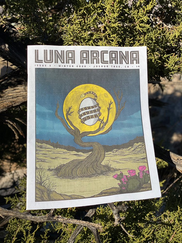 Keeping a truly independent, grassroots creative enterprise alive during these strangely unsettling COVID times is no mean feat. But that’s exactly what writer, Rohini Walker and visual artist, Martin Mancha have done with Luna Arcana, and the recent launch of its new issue 5. Based in Joshua Tree, CA, with Walker- a British-Indian transplant to the Mojave Desert- and Mancha at its helm, Luna Arcana is an Arts + Literary print and online publication that has its muse the deserts of the south-west. Through this evocative environmental and geographical lens, it explores themes related to mythology, alchemy, indigeneity, plant medicine, conservation and permaculture. It also spotlights the desert’s thriving community of writers and artists.